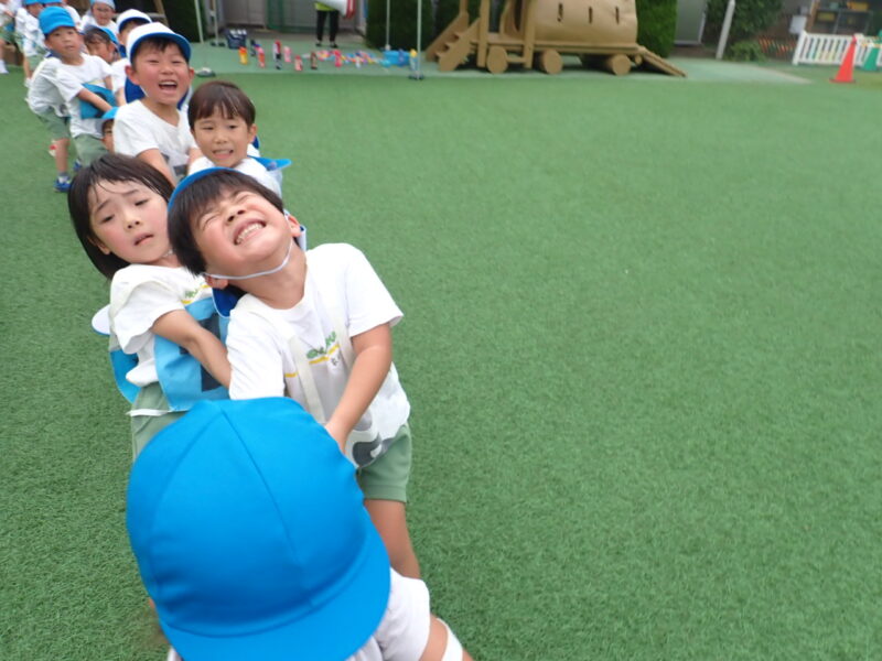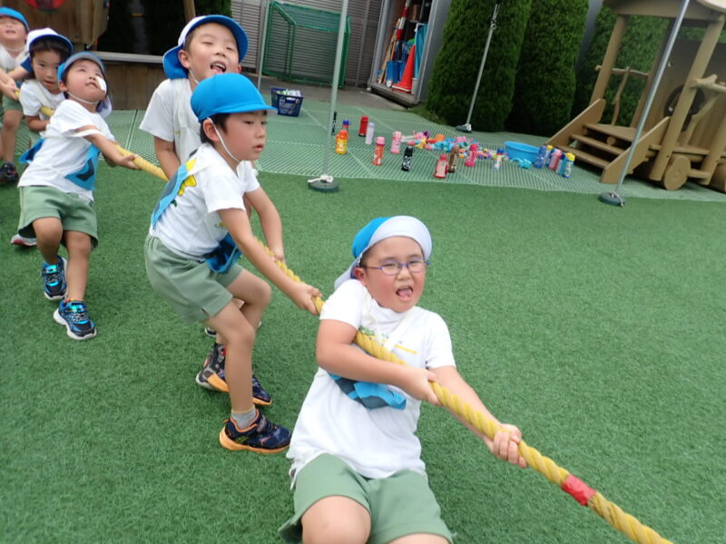 給食を食べたら、ゼッケンをつけて、園庭でリレーと綱引きの取り組みです。(曇ってきたのでチャンス!!) こちらは、写真撮りが出来ませんでした。