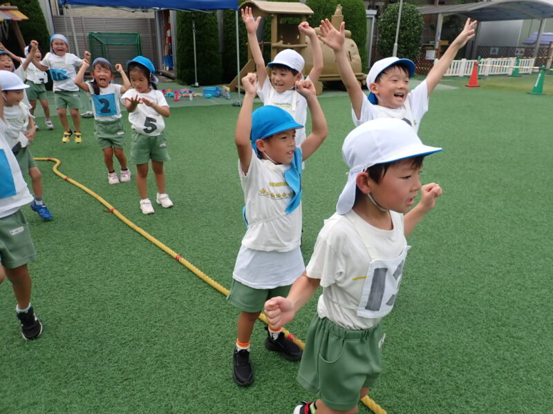 年中組さんのかけっこのお手伝い。自分に向かって走って来るって嬉しいね!