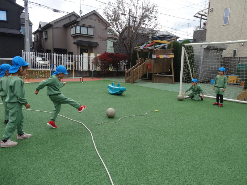 遊びの最中で、「●●くんの蹴ったボールが当たった!」と、訴えがありますが、かなり至近距離からシュートをしている姿も見られています。