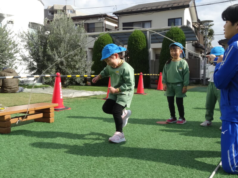 前半は、苦戦していたお友だちでしたが、後半になると男の子がメキメキパワーup!5.6人跳べる様になったよ~!と、箭内先生より♡