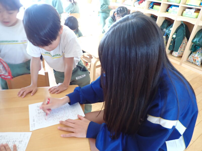 お姉さん先生も、書き順を教えてくれたり、書き終わったお友だちに、綺麗な「はなまる!」を書いてくれました。