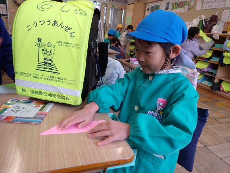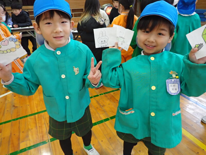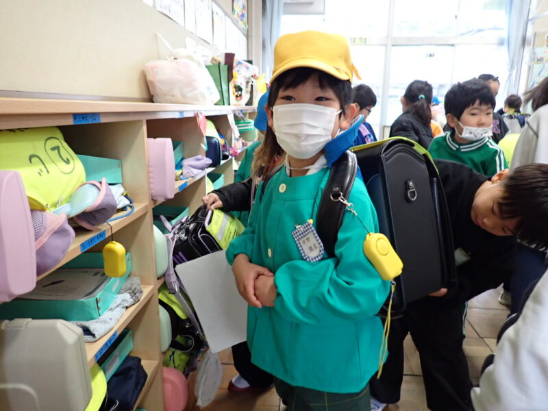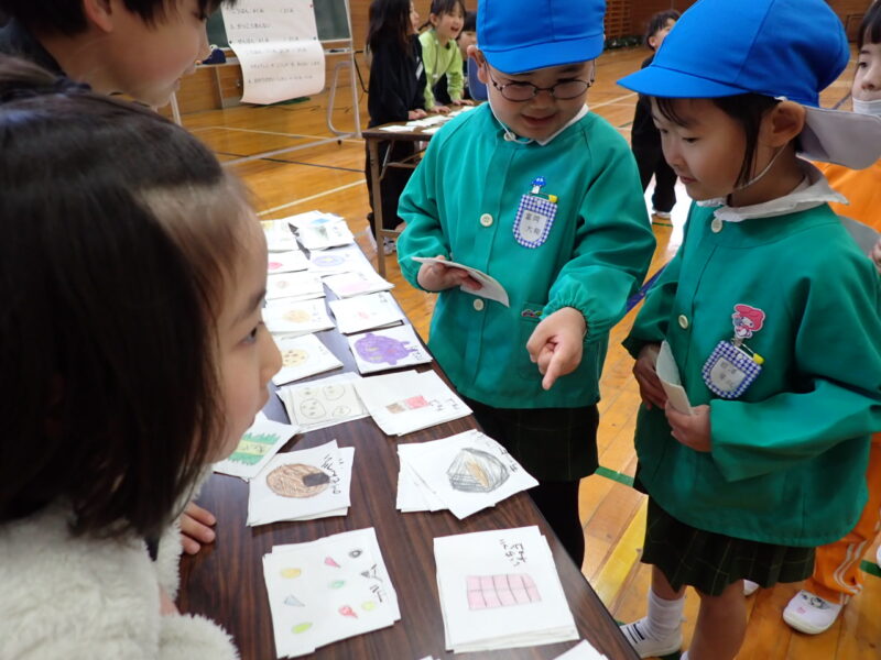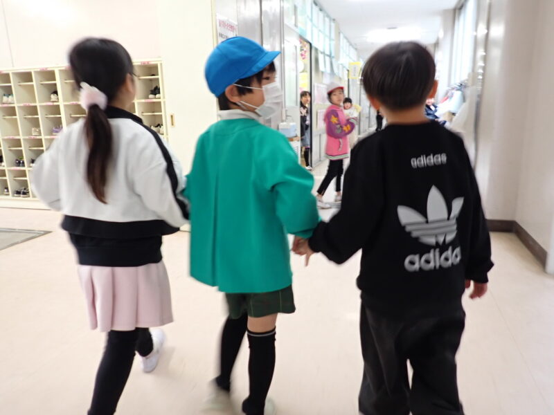 1年4組のおともだちが、一緒に学校見学。