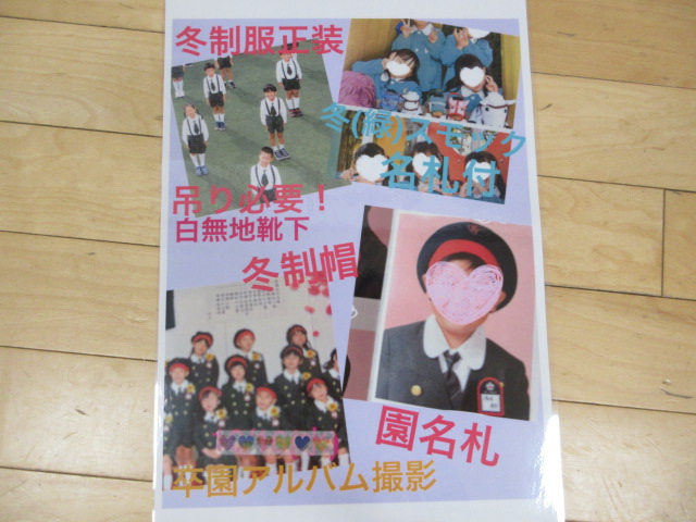 ○卒園写真撮影 服装については、イロドリンク10月号で、配信されおります。
