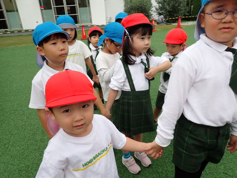 年少さんと手を繋いで歩く時に、気を使いながら歩くことができる 頼もしいお友だちもいましたが、自分中心に先に歩いたり、注意の声掛けが出来ていなかったりと、ちょっと残念な姿も見られたので、次は、お手本になる様にサポート頑張ろうね。