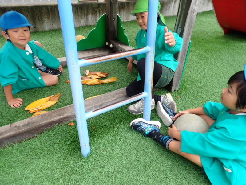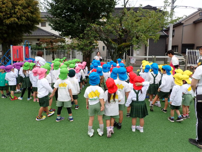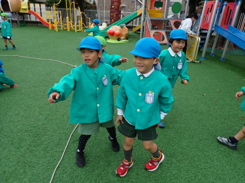 給食の後に、全クラスで散歩に出かけました。来月は、七五三参拝があり、その後には、楽しみにしているキッザニアが待っています。脚力、体力をつけるためにも、お天気と時間を見て取り組んでいきます。