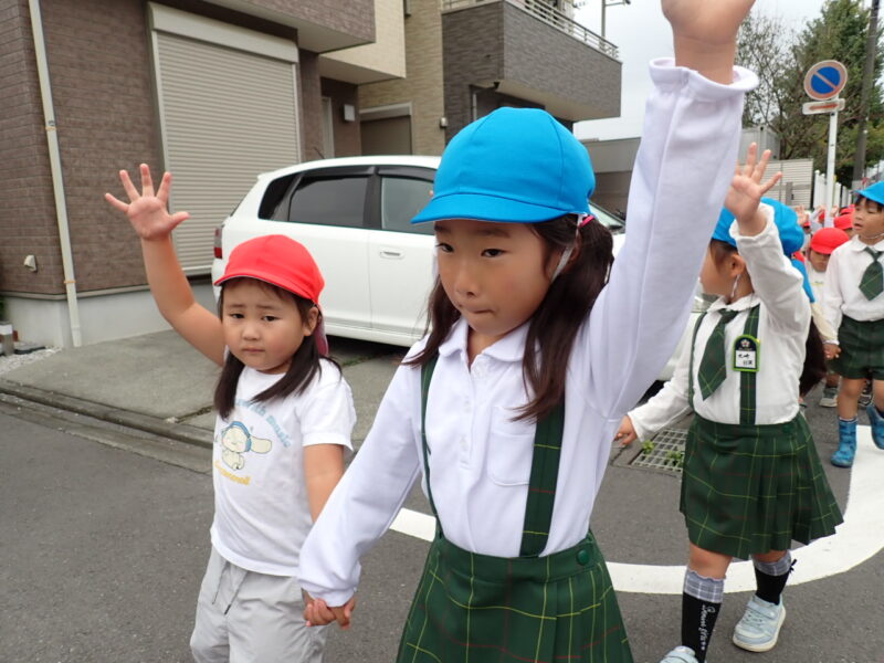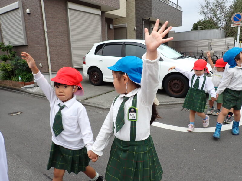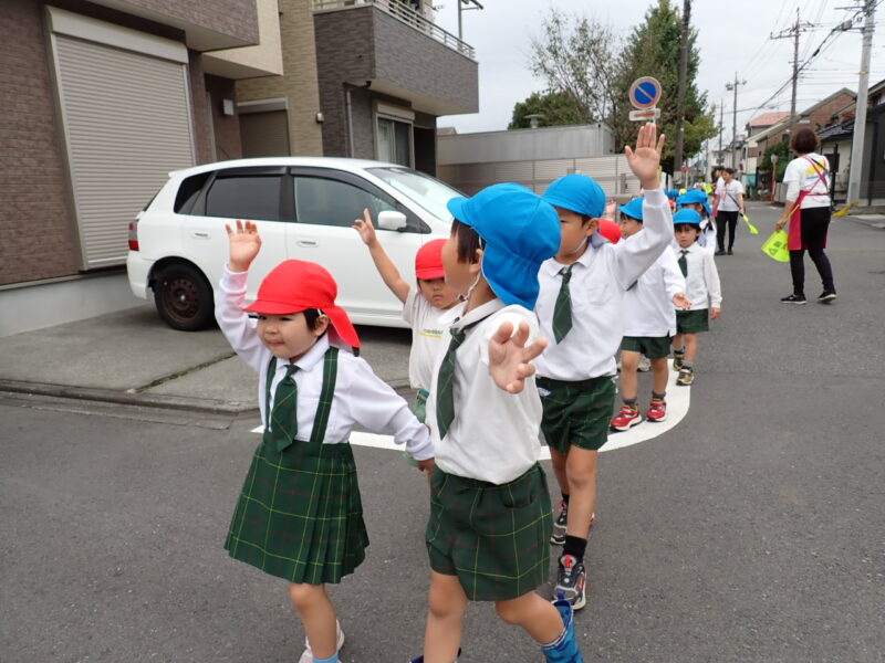 給食の後に、全クラスで散歩に出かけました。来月は、七五三参拝があり、その後には、楽しみにしているキッザニアが待っています。脚力、体力をつけるためにも、お天気と時間を見て取り組んでいきます。