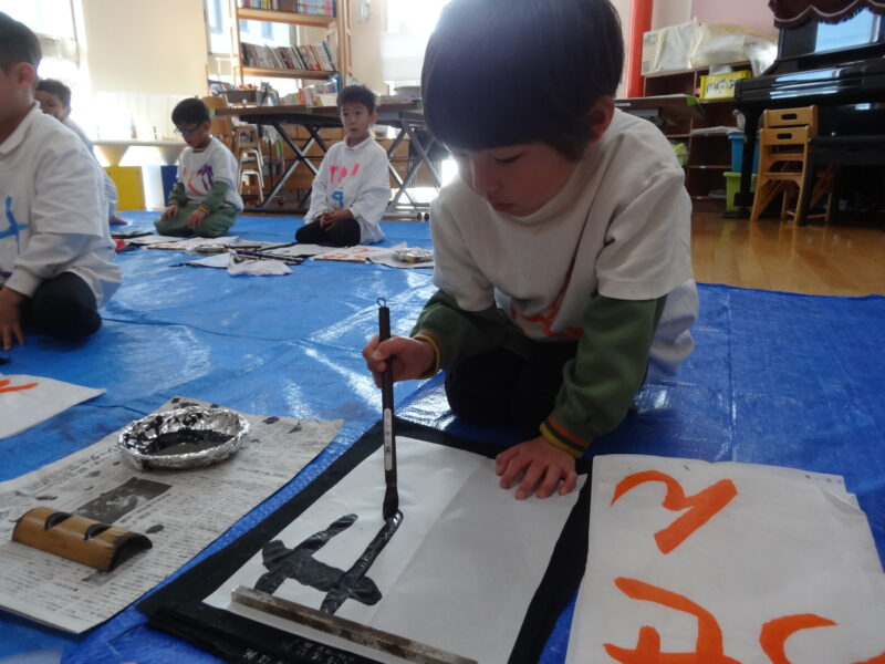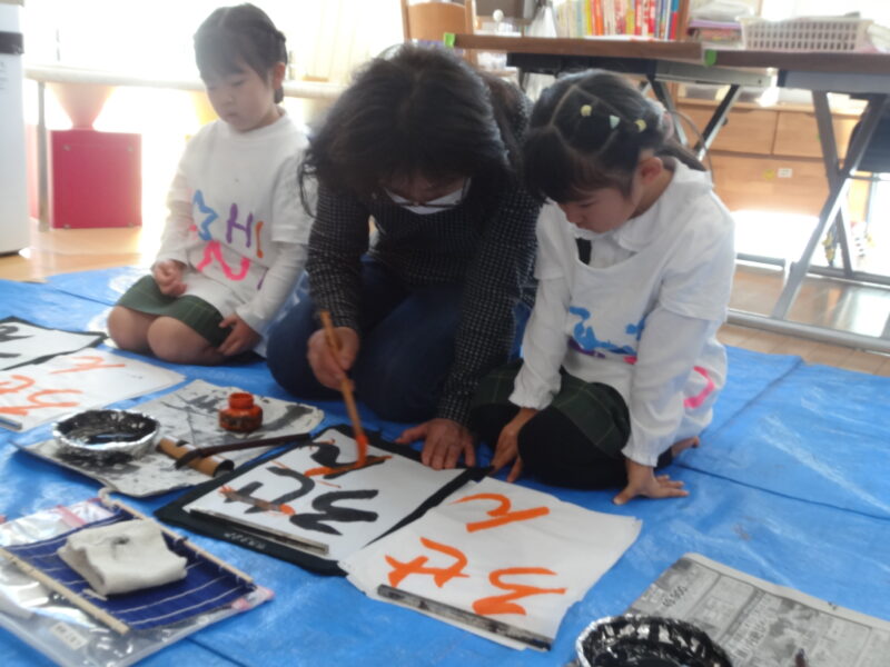 今学期の習字はおしまいです。筆をきれいに洗って乾かして保管し、3学期にお持ち込み下さい。キャラクターTシャツも使用しませんので、お持ち込みはいりません。こちらも3学期にお持ち込みをお願いいたします。(持ち込み日は、お知らせいたします。)