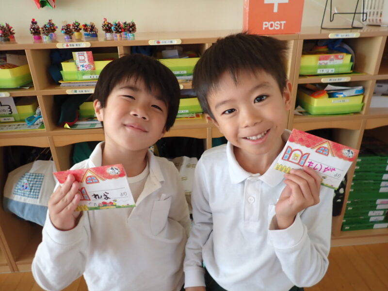 手紙が届いて嬉しいね!「お手紙が届いたらどうする?。」 「ラインする。でも、教室じゃぁ出来ないよねぇ・・・。」「電話でありがとうって言う。」。 「お返事を書く。」と言う言葉が、すぐ出てこなかったの少し戸惑ってしまいました。携帯があり、文字を書くということが大人でも少なくなっていますね。漢字も変換してくれるし、AIに素敵な文章を考えてもらえる世の中ですから、自分の字で思いを届けるとは、直ぐ思わなくなってくるのでしょうか。手紙のやりとりを、来週も続けたいなと、考えています。