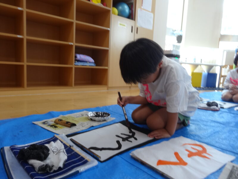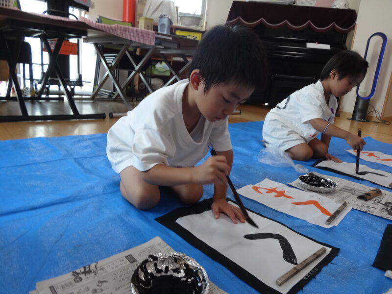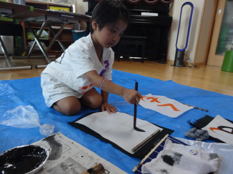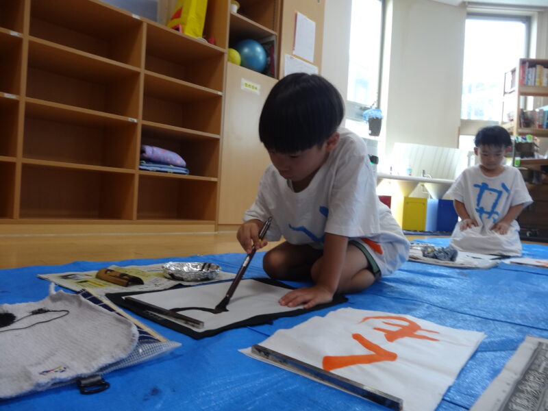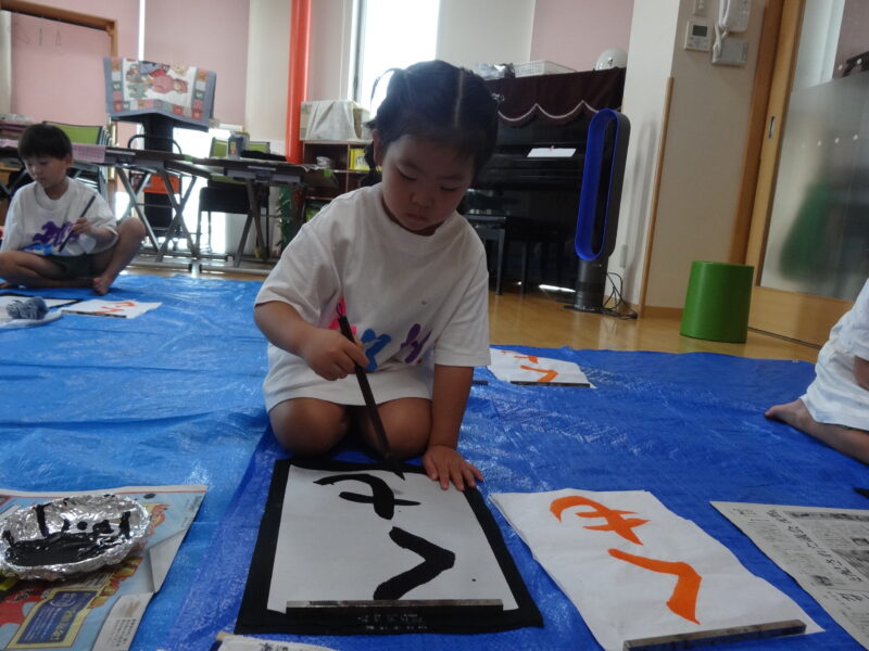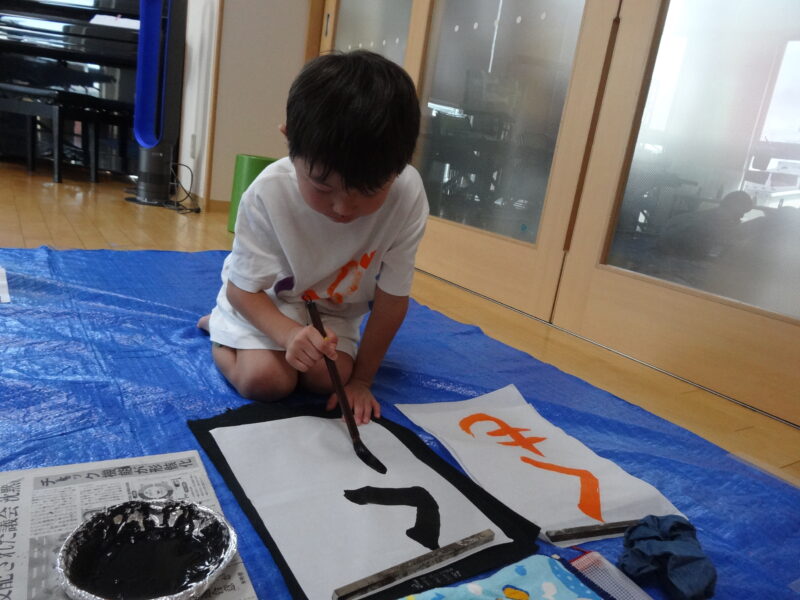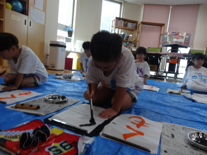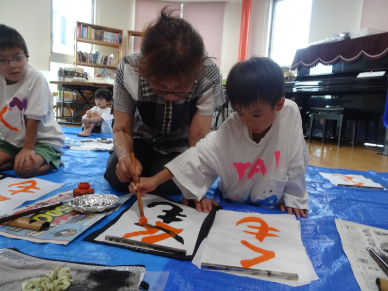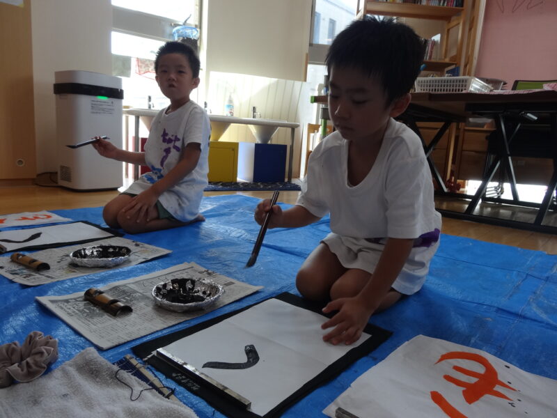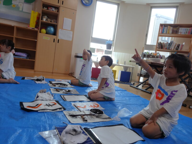 久しぶりの習字の時間。朝から、オリジナルTシャツを着て楽しみなおともだちでした。