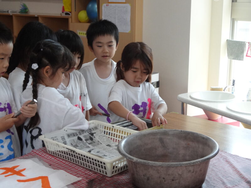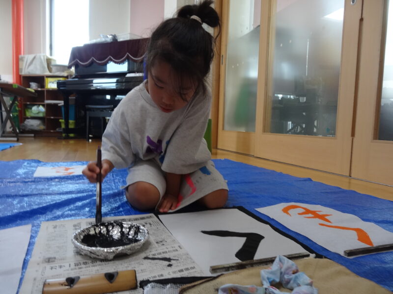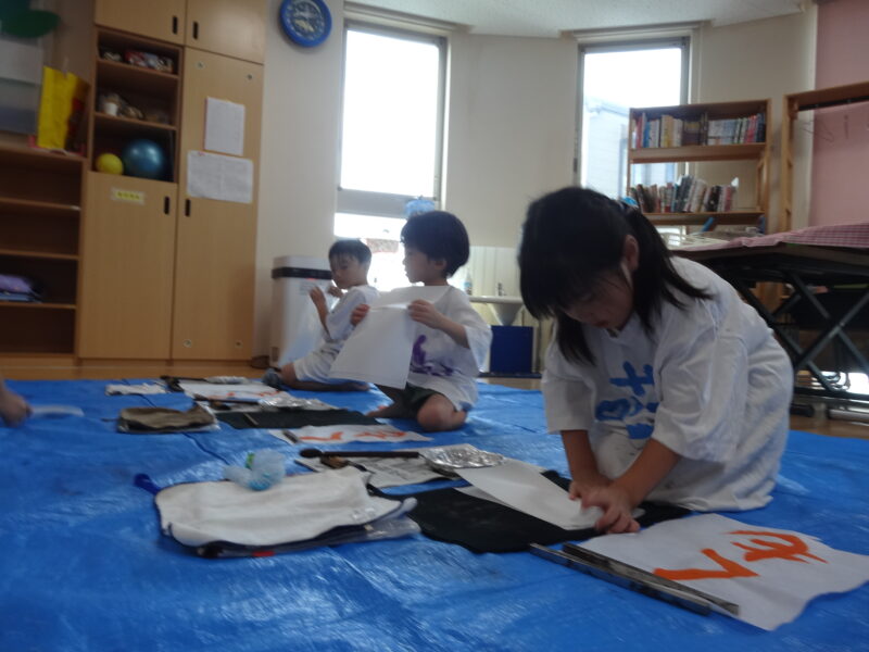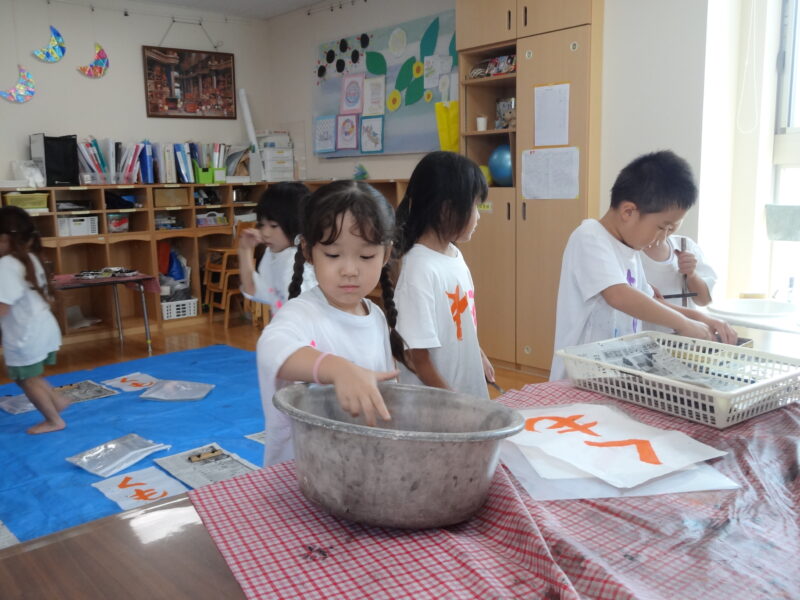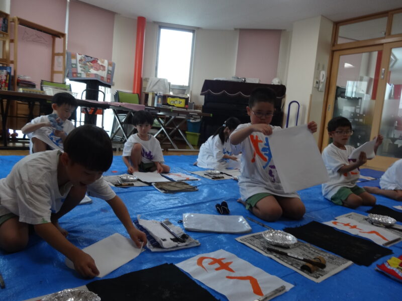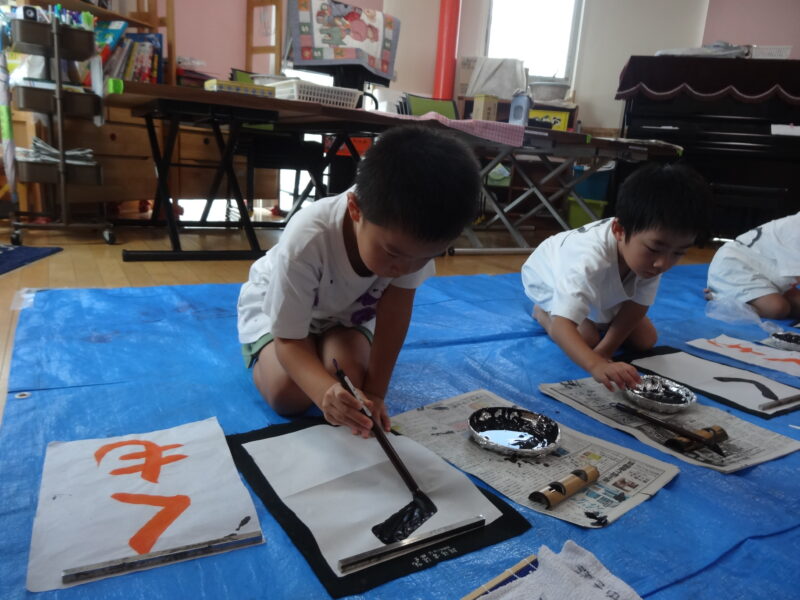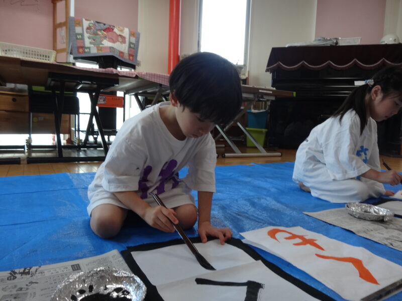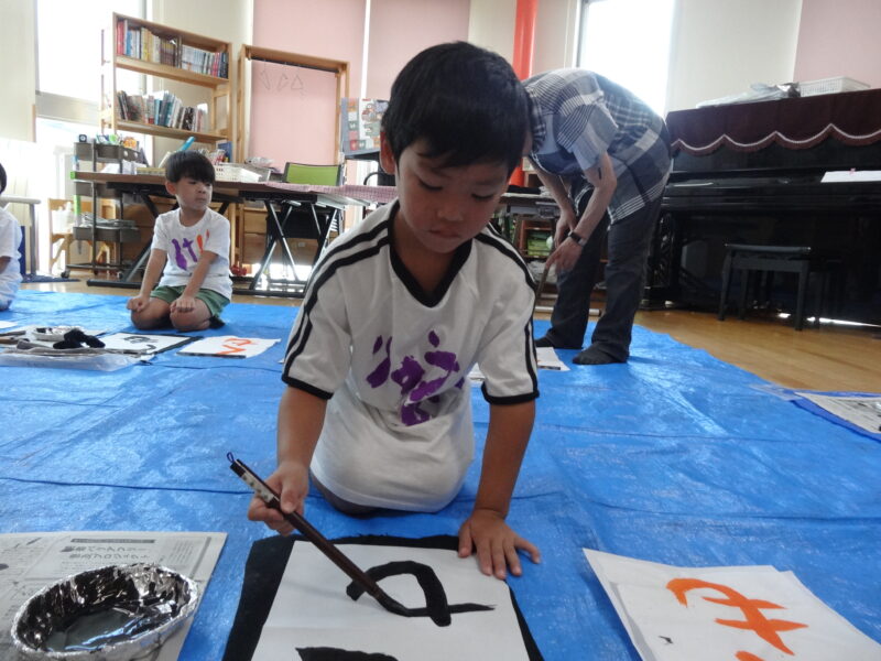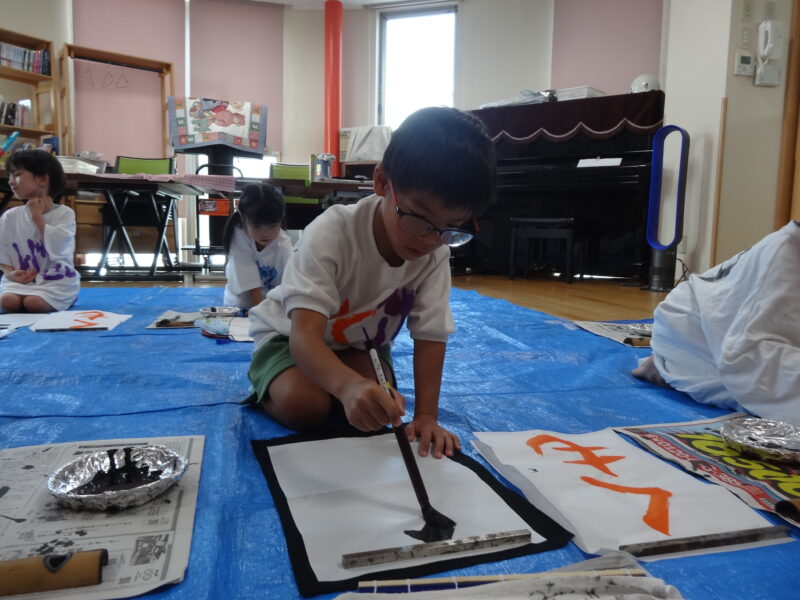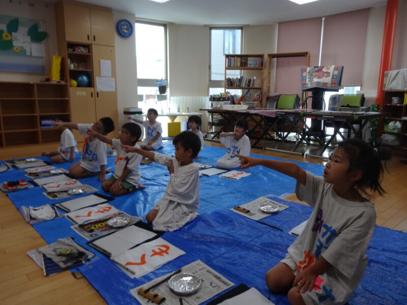 久しぶりの習字の時間。朝から、オリジナルTシャツを着て楽しみなおともだちでした。