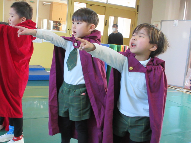 毎日、最後の時間での取り組み。1週間よく頑張ったね。朝、台詞の取り組みをした時には、一人ひとりは台詞を覚えていたのに、ホールになると、自信がなくなってしまったり、出来るからと、先に言ってしまったり・・・。気持ちを合わせる=周りを意識することを頑張って行こうね。気持ちが入ると、素敵な演技になってるよ!