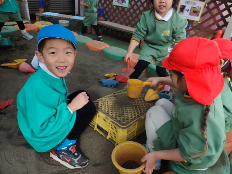 年少さんと仲良く砂あそび。妹みたい?で楽しいね。