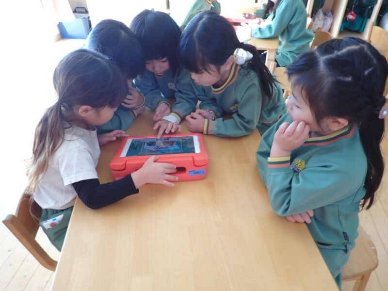仕上がった物語を見て、大笑い。でも、物足りない所があったり、ちょっと変えてみたい・・・「もう1回直してみようか。」と制作意欲が出て、机に戻ると頭を突き合わせて取り組んでいました。明日、ミニ牧場のお留守番グループが、先に上映会で観る予定です💛。