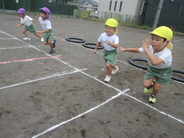 ゴールを目指して走り抜け!返事の声も大きくなってきたね!