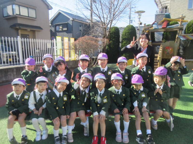 「すみれぐみ~」とにっこり笑顔✨ 集合写真を見てなんだかしみじみ。4月の頃の集合写真と見比べて「こんなに大きくなったのか。」と、びっくりしました。