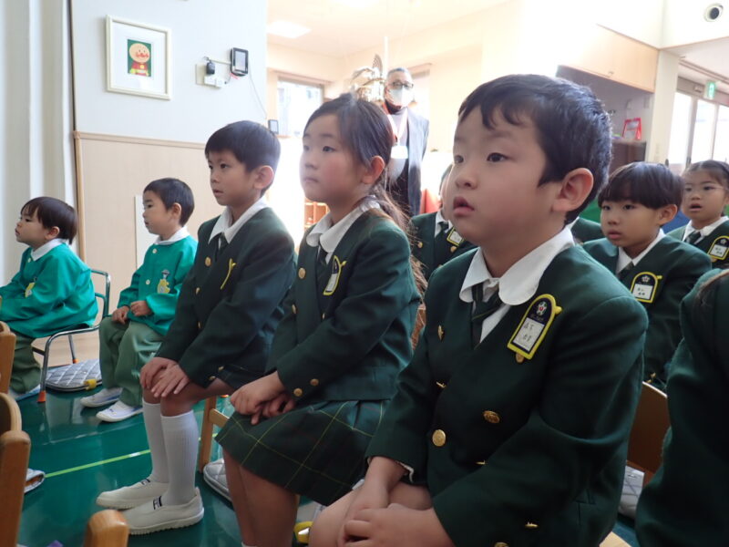 3学期始業式も、年少さん、みかん組さんと一緒に行いました。