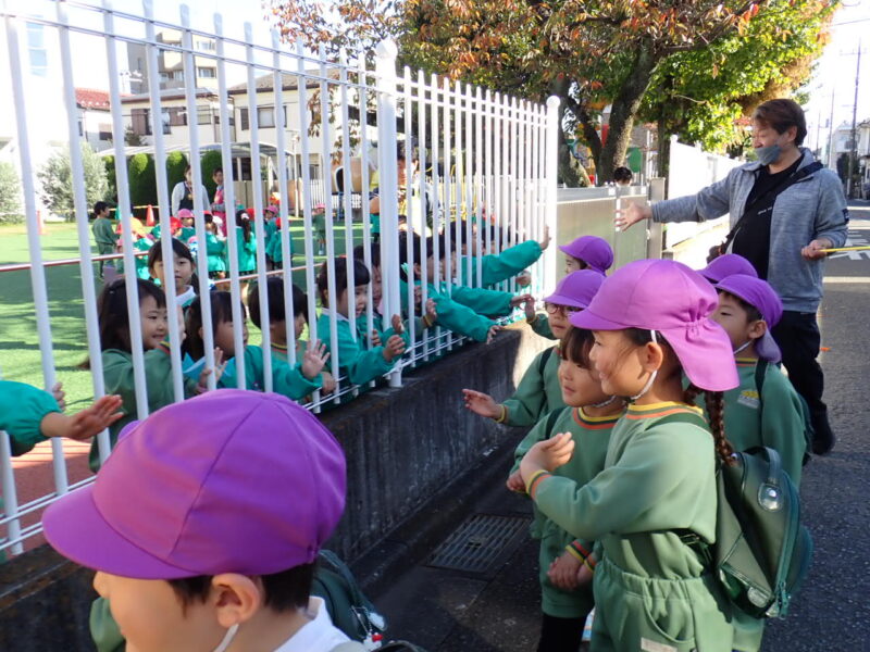 すれ違う方へのご挨拶は「先生もみんなの元気パワーに負けないぞ」と言いながら挨拶を行っていたら、とっても笑顔いっぱい!元気いっぱいの声で