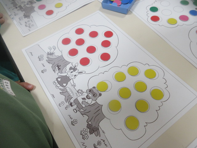 「あ!うさぎとたぬきがジャンケンしてるよ!」と気付いたおともだち。「一緒に勝負~!」と、あちこちでじゃーんけーんポン!の声が聞こえてきました(*^^*)