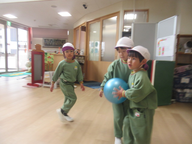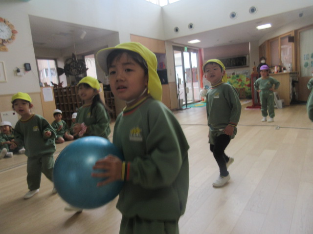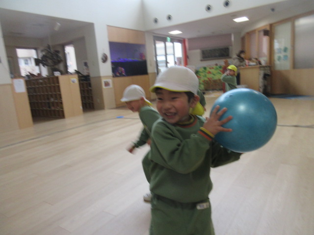 園庭でのドッジボール大会は叶いませんでしたが、ホールで熱い!ドッジボール大会が繰り広げられました~!