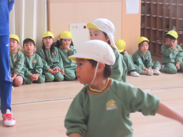 途中、桜組さんも応援にかけつけてくれました!晴れたら一緒に、お外でもドッジボールやろうね~♪