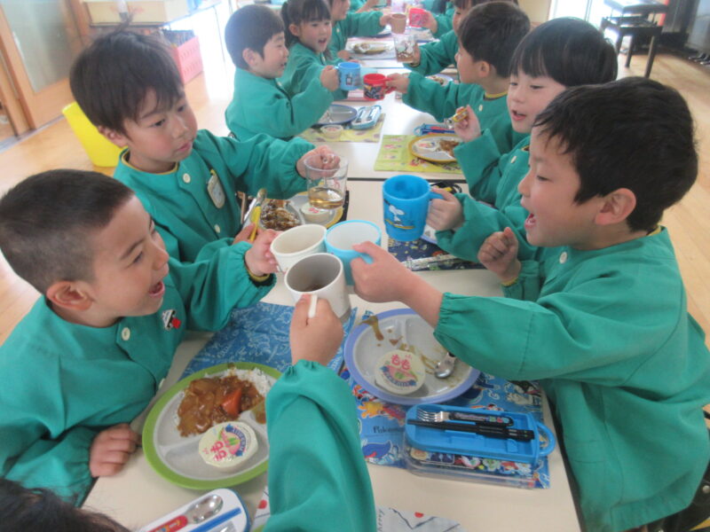「ドッジボール楽しかったね」、「○○の投げるの上手だったよ」なんて、お話を楽しみながら給食を食べました。