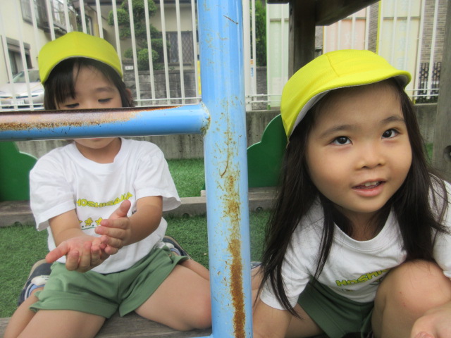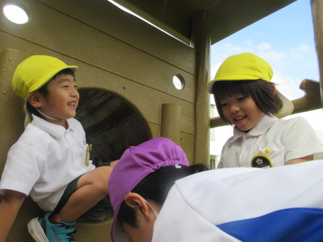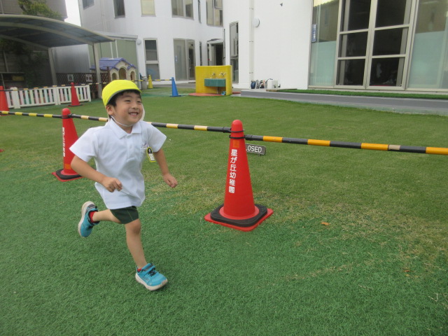 園庭では、大きく膨らんでおり、苦手だった「風船」も大きくなったね!