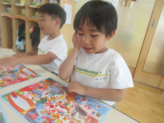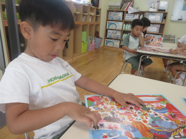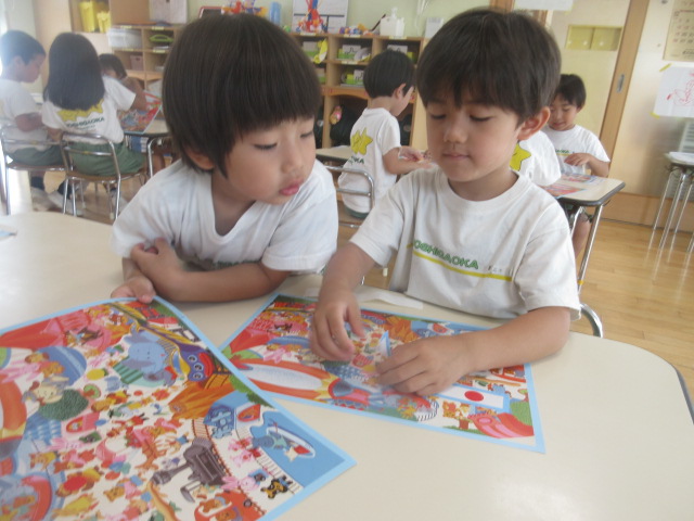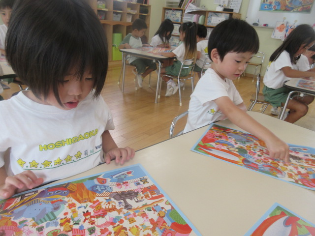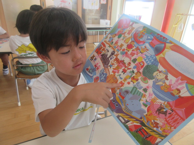 ただ犬を探すだけでなく、「赤い服を着ていて~」、「風船を持っていて~」等、条件に合った子どもの動物を見つける事がねらい!