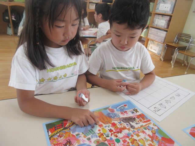 ペアになってゲームを考えてみたよ!迷子を見つけるゲームだったり、動物の数を数えるゲーム等、試行錯誤しながら考えていました。