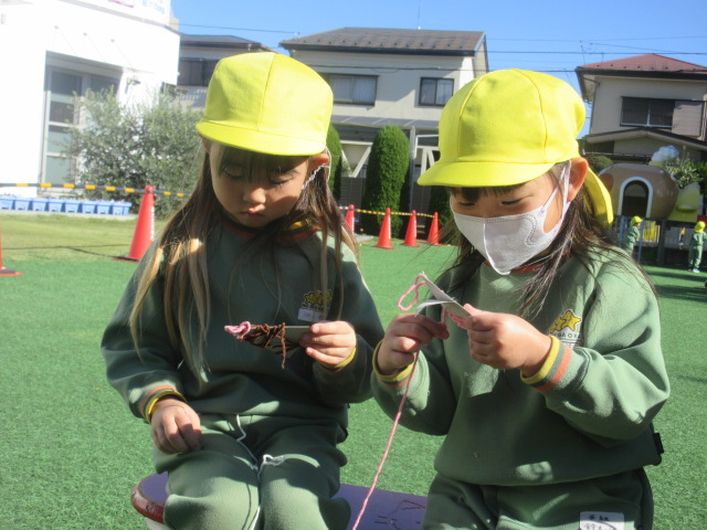 外遊びをしながら、クリスマスツリーの製作をしました!恵子先生が、「毛糸、ぜひ使って下さい♡」とおっしゃってくださった為、毛糸を使って、クリスマスツリーを作ったよ~!(今日は、全員分終わらなかった為、明日、続きを行います★)