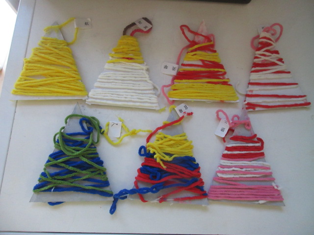 色々な色の組み合わせのクリスマスツリー★ 後日、ビーズやスパンコールで飾りつけを行います(*’ω’*)