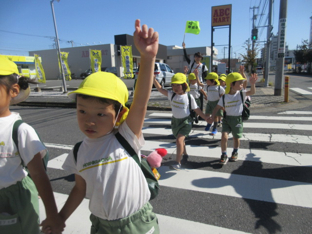 横断歩道もしっかりと手を挙げて渡ろう~~!!