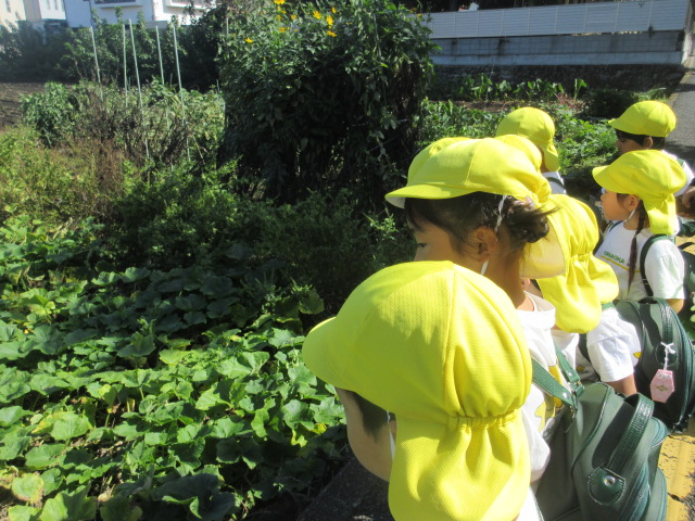 ミニ牧場に向かう途中に、畑をみ~つけた!何が植えてあるかな~??(ちょっと担任では、何の野菜が植えてあるのかわからず…。。)