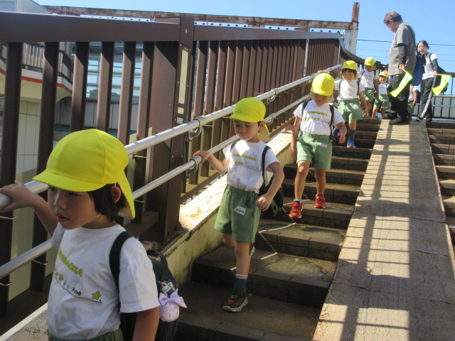 駅の階段を下りて~。。。(階段では、危険な為、手を離して降りるよ!)