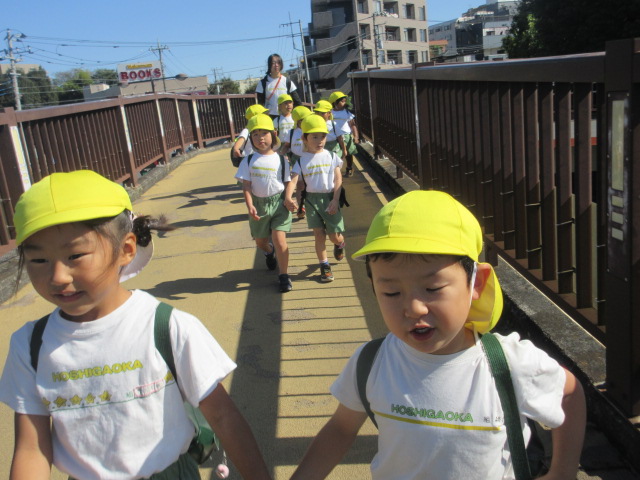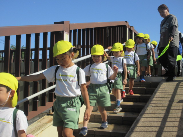 駅の階段を下りて~。。。(階段では、危険な為、手を離して降りるよ!)