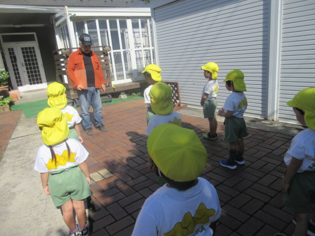 ミニ牧場についた~!日差しが強かった為、日陰でお話を聞くよ~!