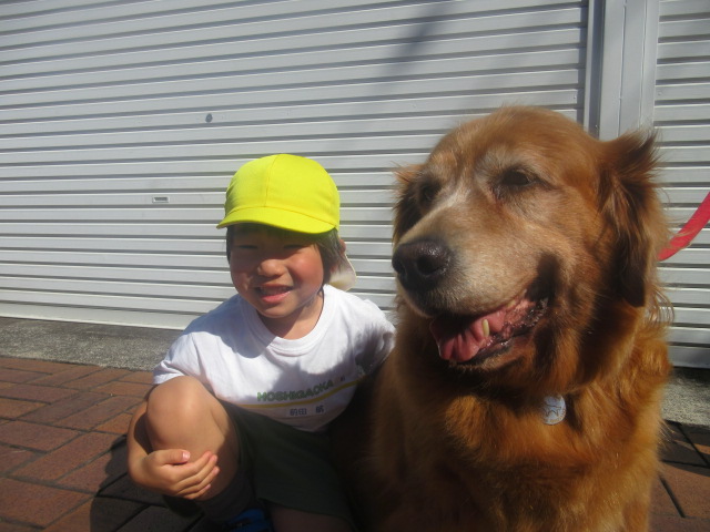 さくらちゃんとアトムくんとの触れ合いタイム!好きな方のワンちゃんと一緒に写真を撮影しました!!ぎゅーっと抱きしめながら…モフモフであったかいね!(#^^#) 2ショット、撮影しました!(アトムくんは、普段、幼稚園に来ないからかな!?大人気でした~!)