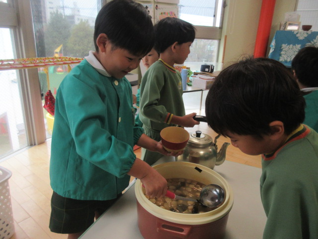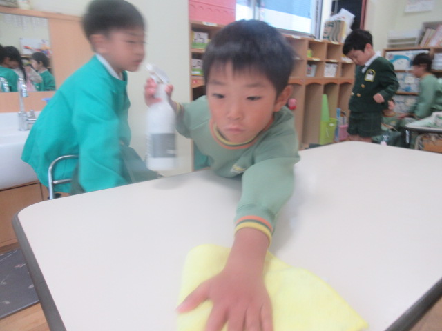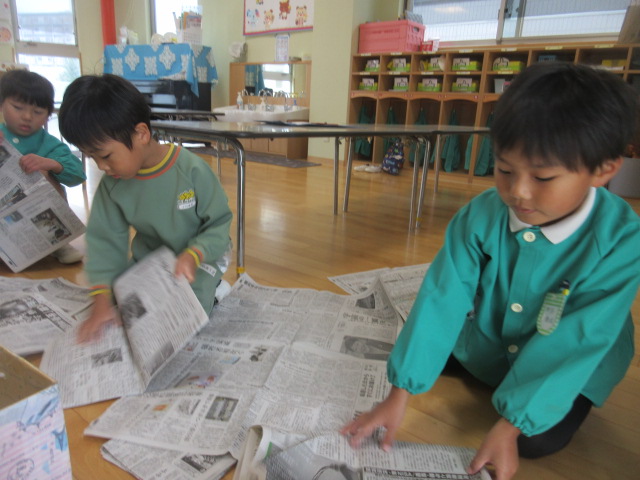 朝は、「新聞紙を折る」お仕事をしてくれたよ!さっすが、年長さん!綺麗にたたんでくれました。