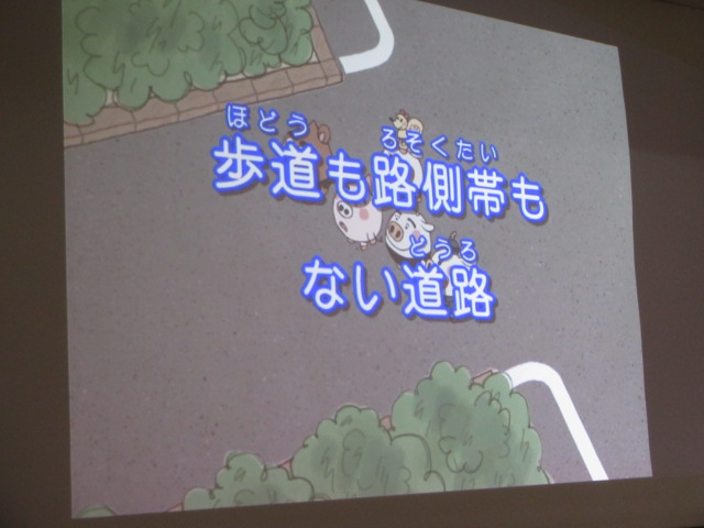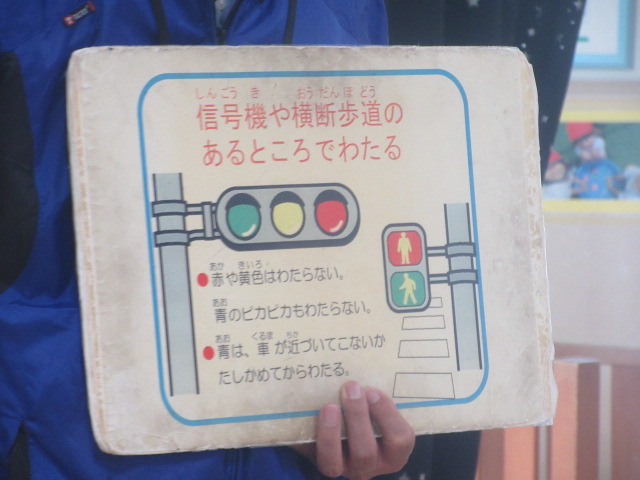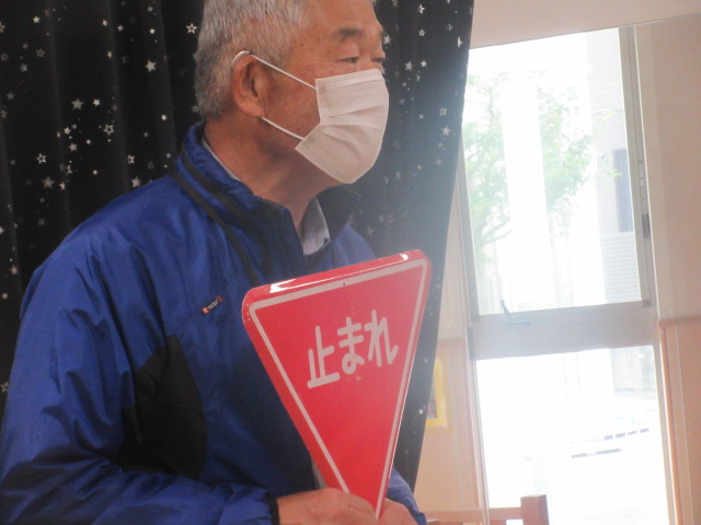 今日は、交通安全教室!散歩やミニ牧場等、園外に出る機会も多くなっており、改めて、交通安全について学んでいこう!