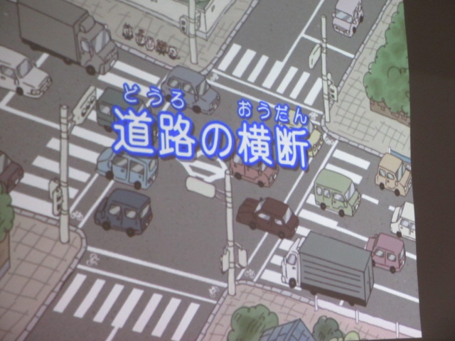 次は、ホールで、交通安全のお話と事故に合わない為のDVDを見たよ~!