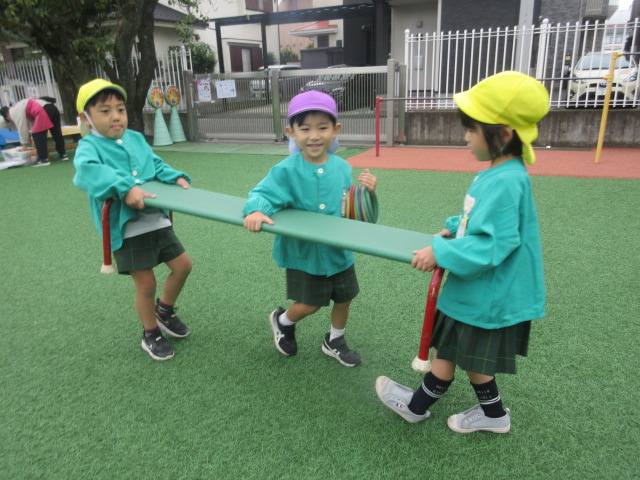 どうも、力持ちです!園庭開放のお片付けのお手伝い~(*’ω’*)
