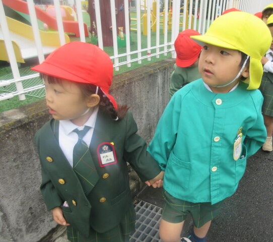 今日のおたのしみは、苺組さんとお散歩★交通安全教室で学んだ事が活かせたかな!?