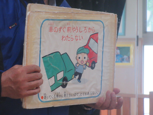 今日は、交通安全教室!散歩やミニ牧場等、園外に出る機会も多くなっており、改めて、交通安全について学んでいこう!