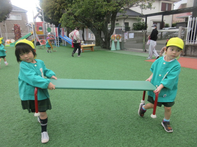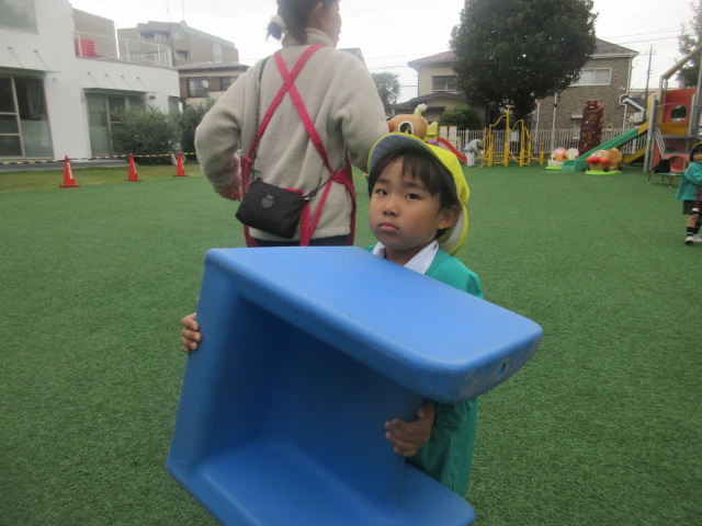 どうも、力持ちです!園庭開放のお片付けのお手伝い~(*’ω’*)