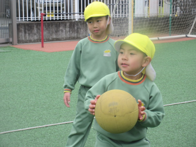 外遊びの時間を使って、またドッジボール、楽しんでいきましょう!