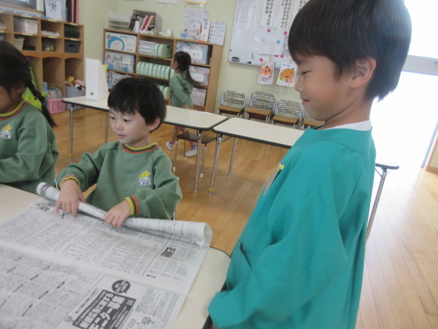 「新聞をくるくる丸めてね…。」、「お芋の形になったら袋に入れてね…」等、友美先生に教えて頂いた事を伝えていました~★