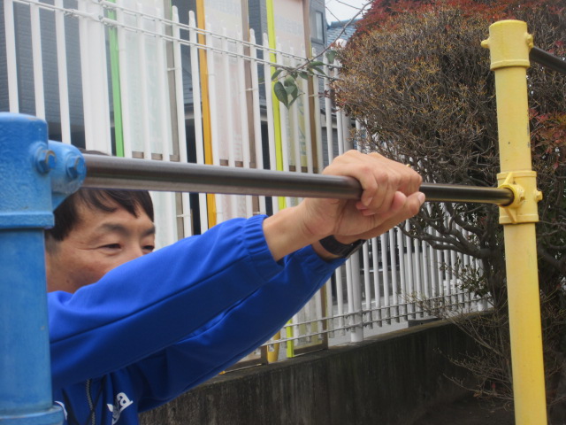 腕の力で、鉄棒にぶら下がってみよう!!