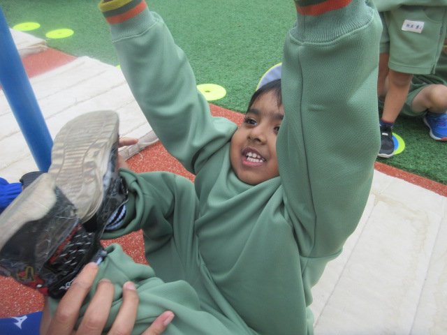 来週は、この「足かけ回り」に+して「尻上がり」に挑戦するよ!次の体育あそびも楽しみだね!!