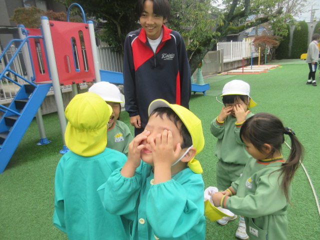 今日から、上溝中のお兄さんお姉さん先生が幼稚園に来ています!外遊びの時にも沢山、遊んでもらったね~!