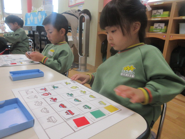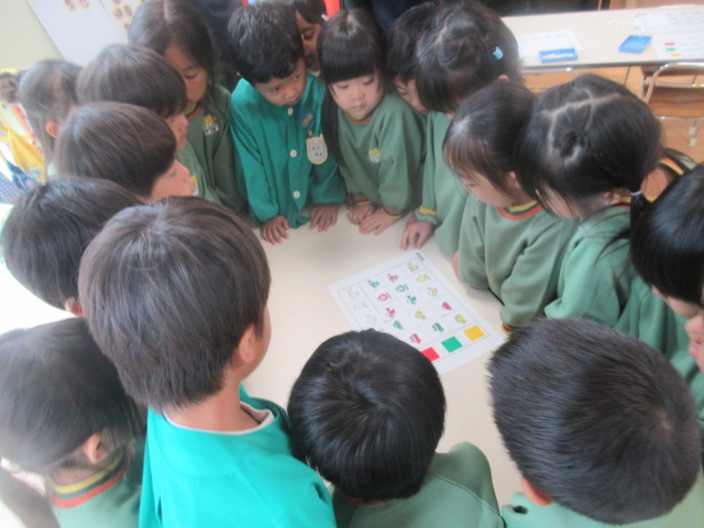 最後は、自分達でオリジナルゲームを考えたよ~!神経衰弱が多かったですが、「色があってたらOK!」、「かたちがあってたらOK!」「色だけではブブー」等、おともだちによってルールが違って面白い!と感じた担任です。
