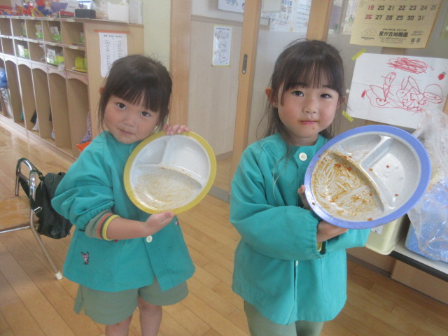 今日はおかわり給食「スパゲッティ」だったね~!容器がほとんど空になってしまうほど、食べていた菊組さんでした!